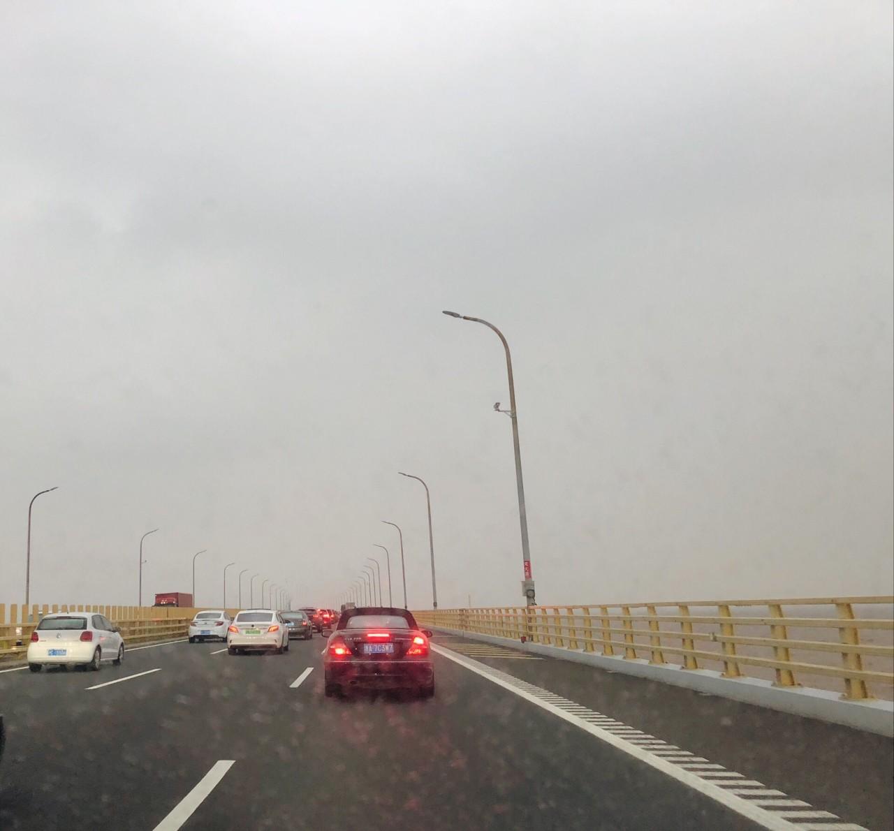 从乌镇到舟山岛的旅途特地选择从杭州湾跨海大桥通过,好一睹风采。路过时能见度不高,在20多公里的行程中,窗外海天一色。由于错过中途停靠点入口,所以没能仔细观赏大桥英姿。比选一下,从杭州湾大桥比陆路要贵50元左右。
