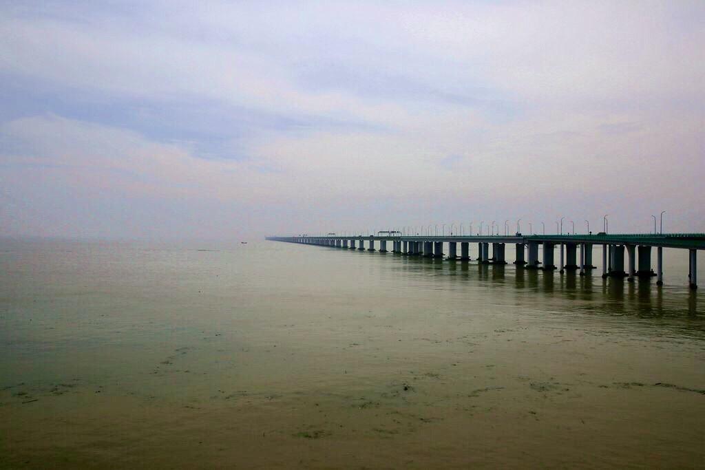 杭州湾跨海大桥连接着钱塘江的入海口,从嘉兴到宁波,是我国最长的跨海大桥,可以欣赏到江海天一色的最美的景致,但是要是赶上堵车就折腾了,大桥上经常会有雾,要谨慎驾驶。