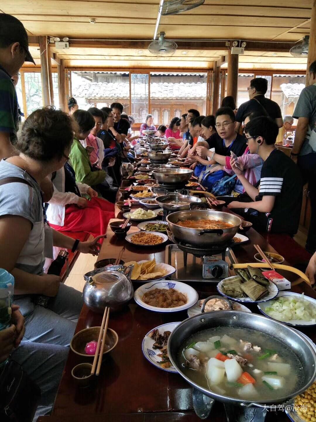 苗族千人长桌宴是苗族宴席的最高形式与隆重礼仪,已有几千年的历史。通常用于接亲嫁女、满月酒以及村寨联谊宴饮活动。左边是主人座位,右边是客人座位。主客相对,敬酒劝饮并对酒高歌。刨汤、腊拼、古藏肉、苗王鱼、白切鸡、野免肉、青岩豆腐、韭菜根……桌面上摆满了苗族的传统佳肴,美味飘香,令人陶醉。