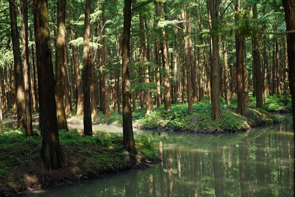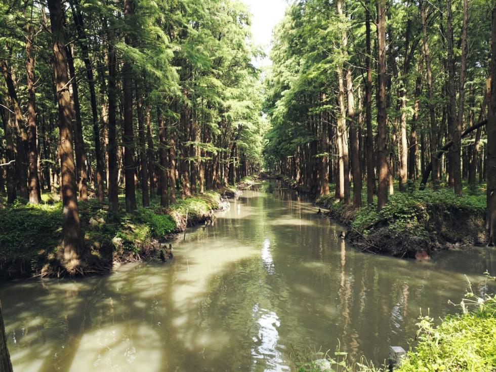 李中水上森林公园是这次旅行中最难忘的景点,虽说是人工园林但很惊艳,一排排高大的水杉上白鹭自由的在枝头飞翔,成林水杉纵横交错整齐划一。人很少没有人会影响你,置身其中,美妙无比。