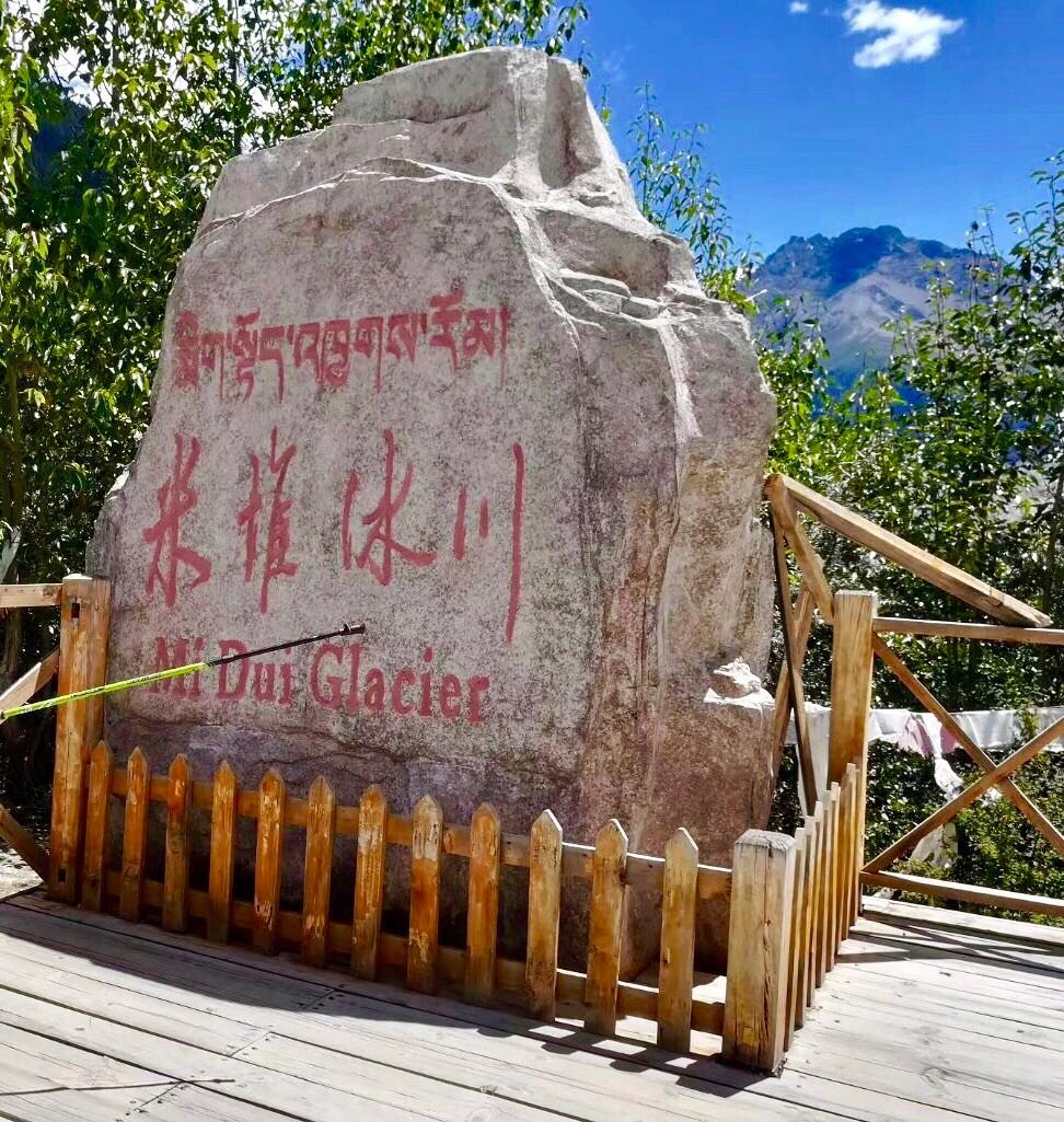 米堆冰川,千万年不化的冰雪,具有丰富而强大的活力。它们把山峰切割出尖锐的棱角,把峡谷挖掘的又宽又平,纯白的冰面上,隐隐泛着蓝色的光芒,比任何童话故事中的冰雪世界还要神奇。近距离观看米堆冰川,泛着蓝蓝的微光。有幸作为冰川脚下的来客,兴奋不已。
