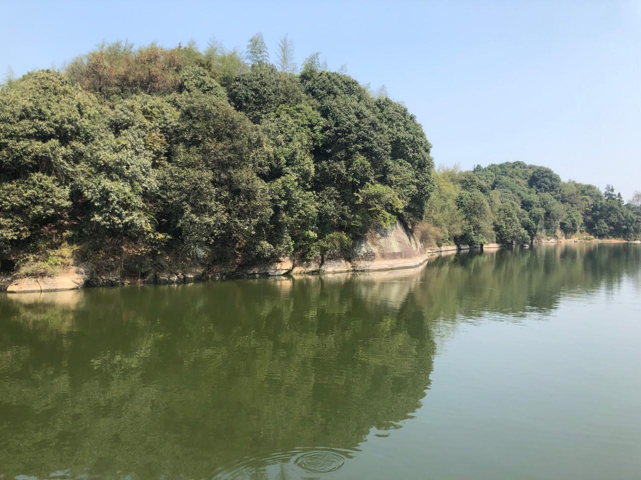 在大学同学的盛情邀请下再次来到还未完全开发的景点“飞天山”。那天天气很热,景区里游客稀少,非常适合出游!我们先是泛舟湖面,湖边的山石十分奇特,除了顶部郁郁葱葱一片,其余部分全是坚硬岩石,好似一个个盆栽,矗立在碧波般的水面!游船行至一座山涯底