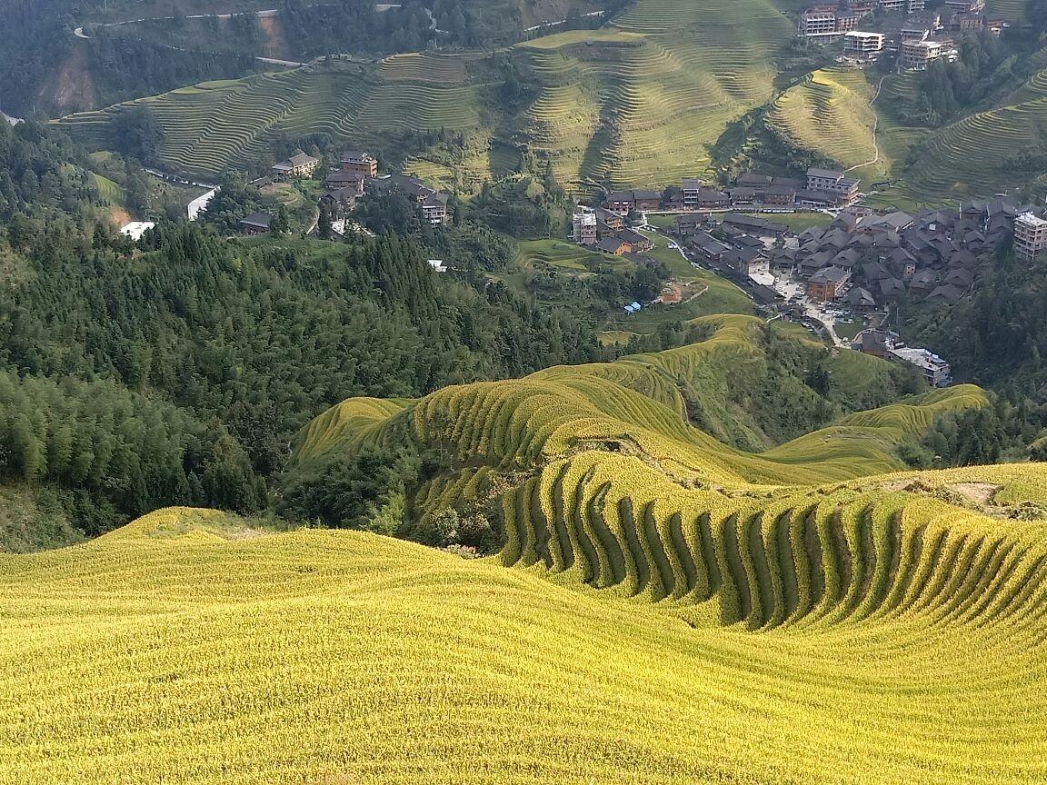 龙脊梯田非常值得一去,我们去的时候刚好水田灌了水。层层水田宛如道道银带,将龙脊打扮得分外妖娆;九月,正是稻子成熟,即将收获的前夕,这时的龙脊犹如座座金塔,格外壮丽秀美,推荐大家来看看。