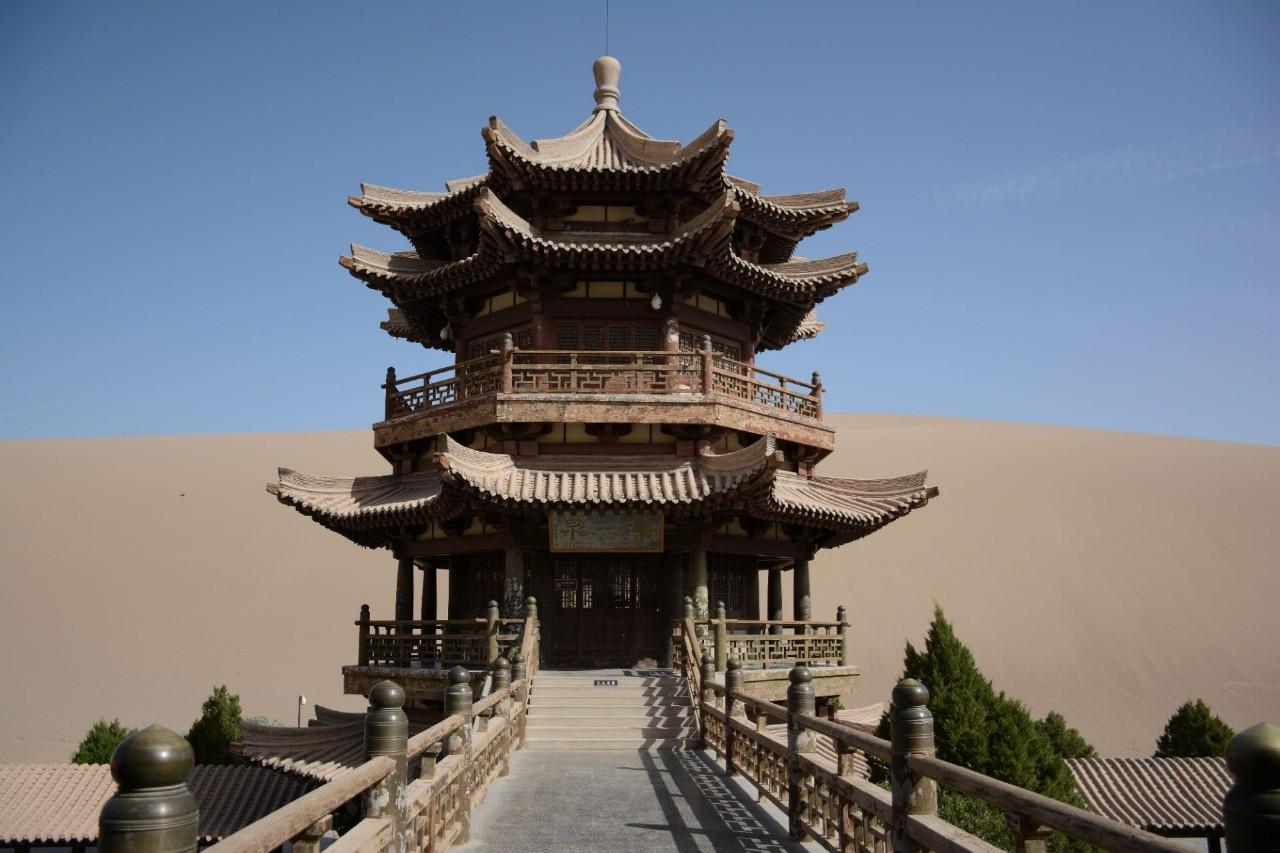 月牙泉,古称沙井,俗名药泉,在城南7公里鸣沙山北麓。自汉朝起即为“敦煌八景”之一,得名“月泉晓澈”。月牙泉南北长近100米,东西宽约25米,泉水东深西浅,最深处约5米,弯曲如新月,因而得名,有“沙漠第一泉”之称。月牙泉泉形逼肖月牙,泉内生长有眼子草和轮藻植物,南岸有茂密的芦苇,四周被流沙环抱,虽遇强风而泉不为沙所掩盖。
